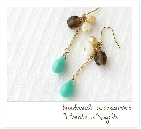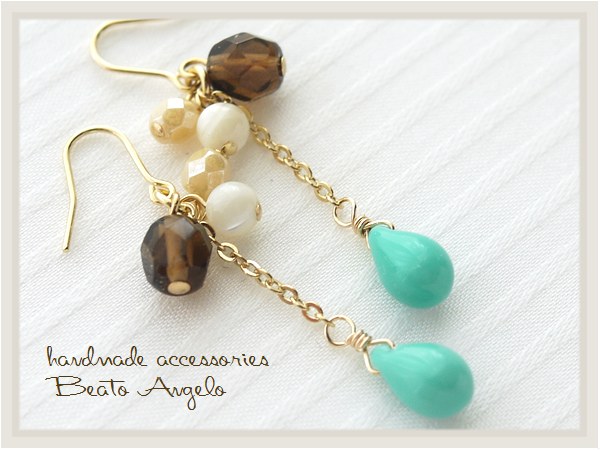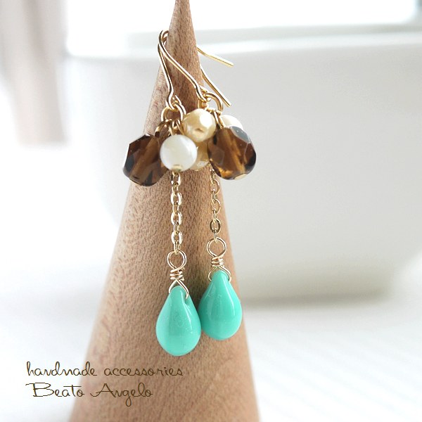 ◆+angelo+チェコドロップとマザーオブパールのピアス(p-243)ターコイズ G d003天然石 チタン樹脂 イヤリング