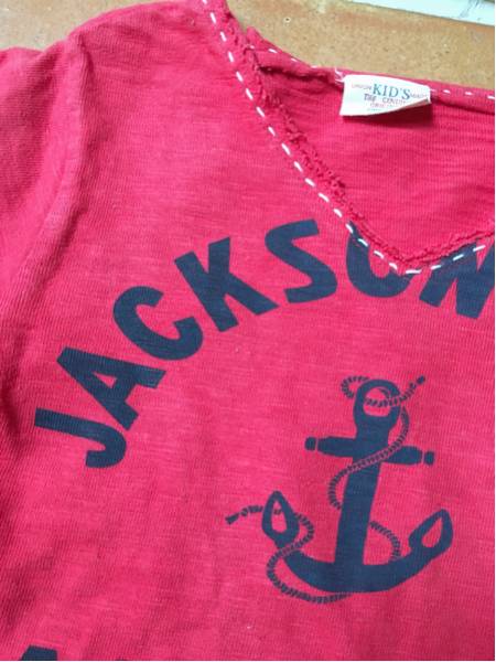 襟ぐりにホワイトステッチ