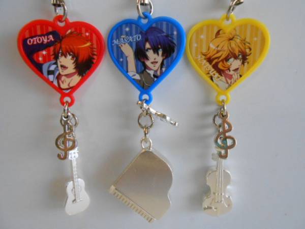 1.一十木 音也 ギター 2.聖川 真斗 ピアノ 3.四ノ宮 那月 ヴィオラ 4.一ノ瀬 トキヤ マイク 5.神宮寺 レン サックス 6.来栖 翔 ヴァイオリン 7.愛島セシル フルート ◇うたの☆プリンスさまっマジLOVE2000% 楽器ストラップに待望の第2弾が登場!! キャラクターのイラストの入ったプレートと、 各キャラクターが得意とする楽器のマスコット付き (ダイキャスト製のシルバーメッキ仕様)です。 |