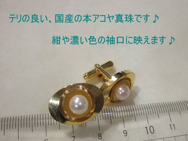 国産アコヤ真珠本真珠カフスボタンカフリンクス!レトロシンプルビンテージデザインが綺麗♪日本製品未使用新古品♪ちょい悪親父系☆48⑥