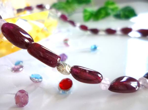 こちらのガーネットネックレスには、間にローズクォーツ(ボタンカット)と