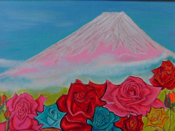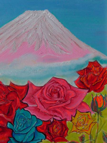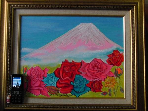 ≪国美協≫TOMOYUKI・友之、『薔薇・富士山』、油彩画、F6号:40,9×31,8cm、油絵一点物、新品高級油彩額付、直筆サイン・真作保証付