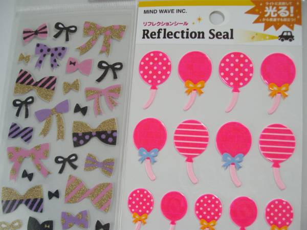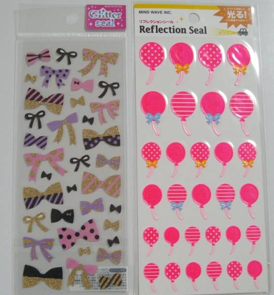 ライトに反射して光るシール。グリッター、キラキラのリボン柄シール。