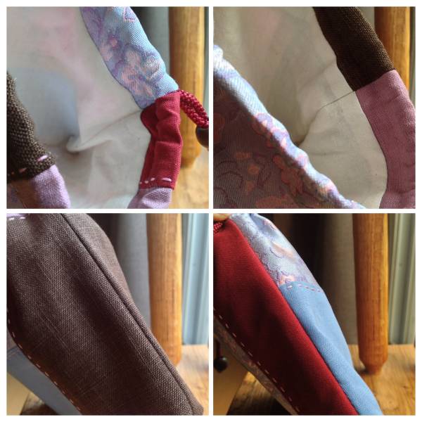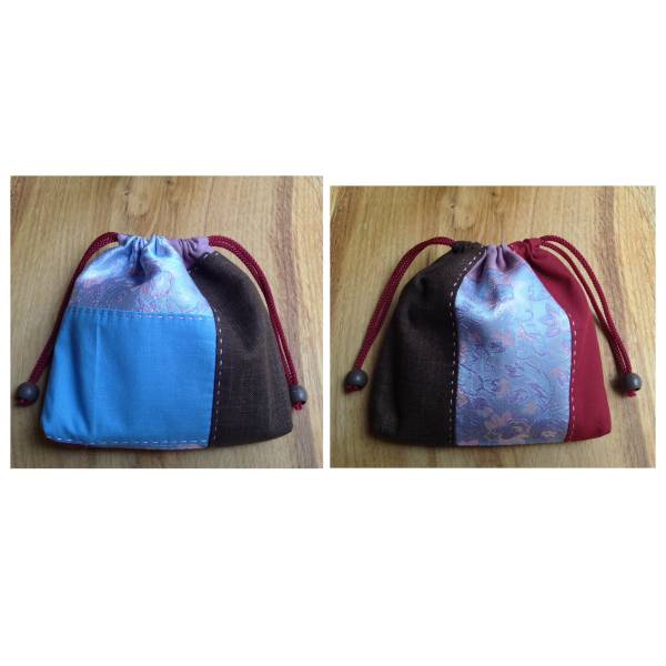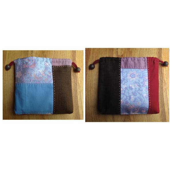 | パッチワーク巾着裏地付8 台エンジ茶17cmx16cm ハンドメイド | ||||