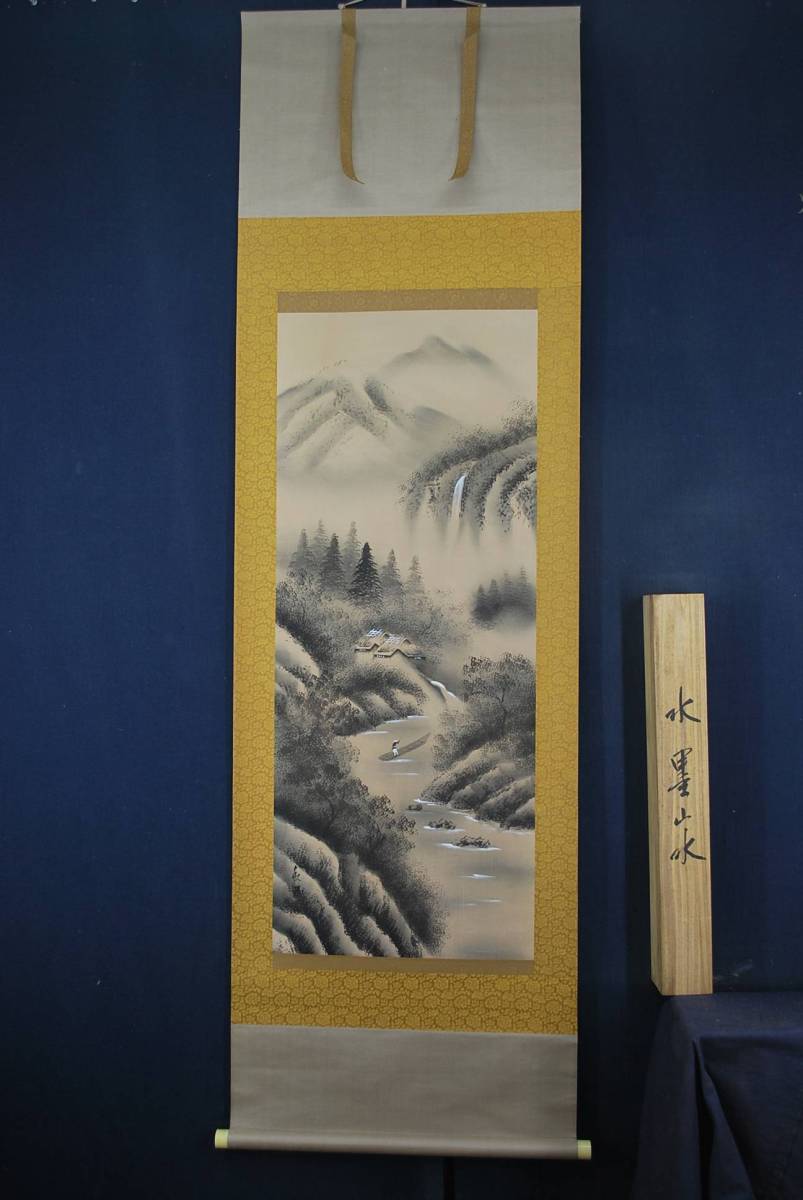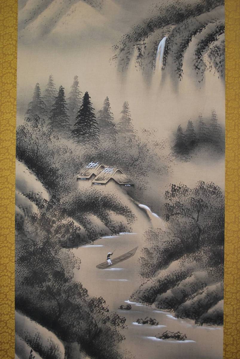真作/秋陽/山水人物図//掛軸☆宝船☆M-567 J