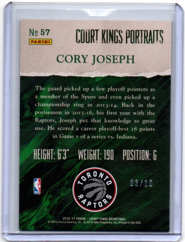 【CORY JOSEPH】2016-17 Court Kings Portraits Emerald #57 03/10