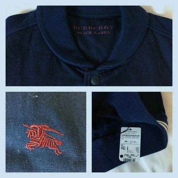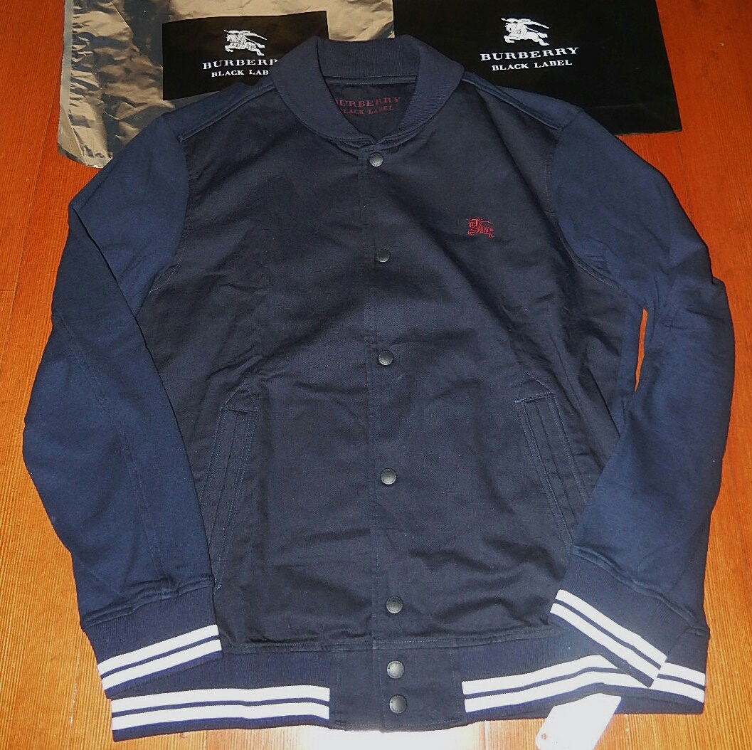 新品 タグ バーバリーブラックレーベル カラー切り替え 加工 スタジャン メタルボタン ブルゾン 紺 ジャケット 3 L ジャージ 三陽商会