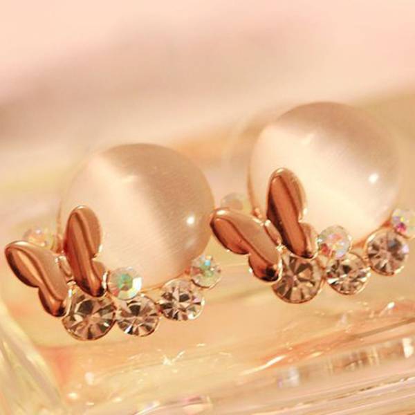 蝶々モチーフにキラキラ輝くラインストーンであしらった、エレガントなピアスです。