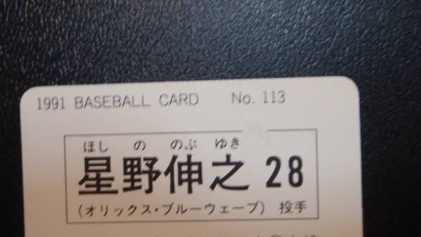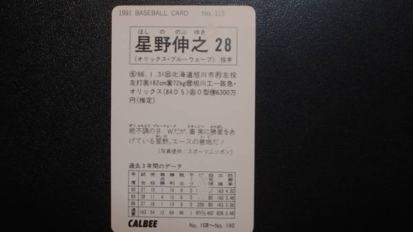 1991 カルビーベースボールカード No113 星野伸之 オリックスBW