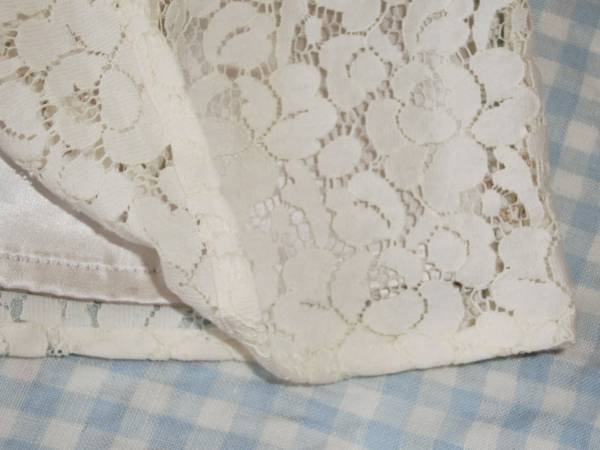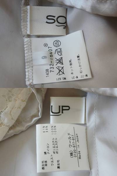 色はオフホワイト~薄いキナリ ウエストの部分はベージュ 透けて見せている裏地もベージュ 素材:綿61%ナイロン39%ウエストはポリエステル100%裏地はポリエステル100% 日本製 サイズM ウエスト68cm着丈52cm 他にも洋服、バッグ、靴、小物、本を出品していますので見てください。