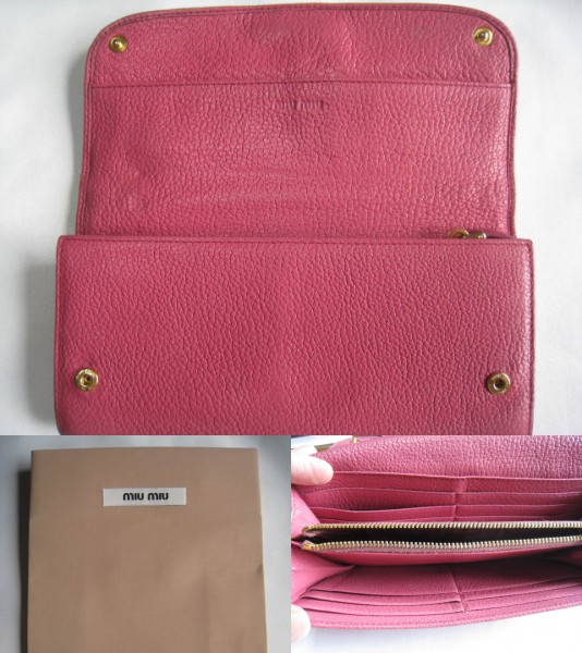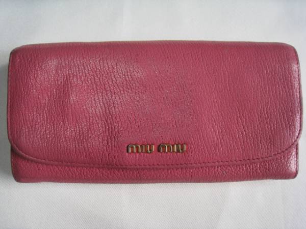 $ 良好品 $ 希少 ◆ ミュウミュウ ◆ miumiu ◆ マドラス レザー素材 ・ 長財布 ◆ ベリーピンク系 ◆ 送料無料!!
