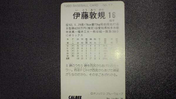 1993 カルビーベースボールカード No17 伊藤敦徳 オリックスBW