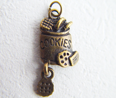 クッキー缶のピューターチャームです。ぶら下がったクッキーが揺れます。