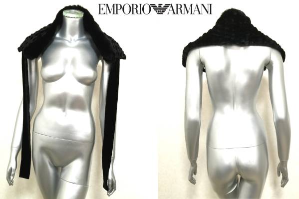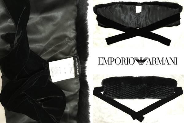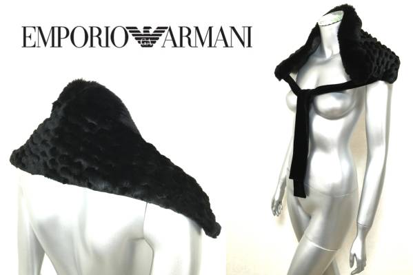 ★ ITALY製!EMPORIO ARMANI(エンポリオアルマーニ)黒ラビット毛皮ファーショール★ | |