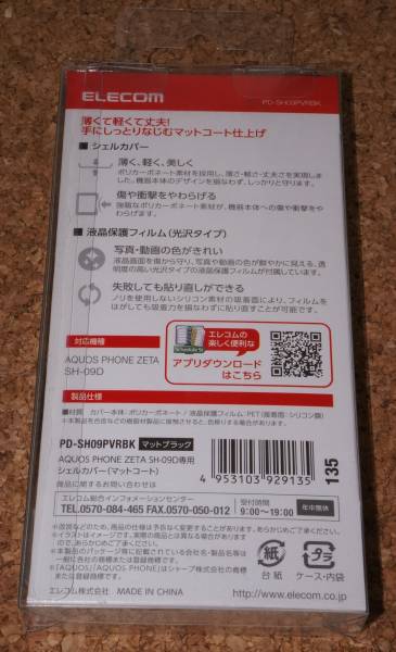 ELECOM for AQUOS PHONE ZETA SH-09D docomo シェルカバー マットブラック 新品・未使用です。