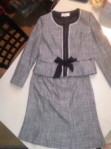 ★カラー濃いグレー系スーツと真っ黒のプリーツスカートのセットになります。