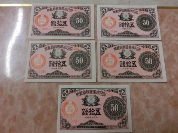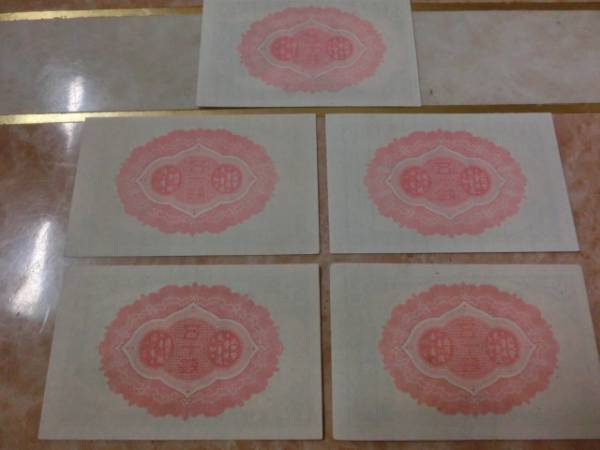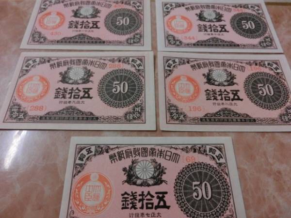 大正小額紙幣50銭で大正7・8・9・10・11年の未使用~準未使用を5枚です。