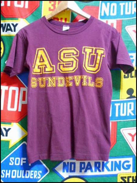 希少な小さめなサイズ感の1枚で、年代物らしい雰囲気をお楽しみ頂ける1970年代~頃のビンテージカレッジプリントTシャツです。