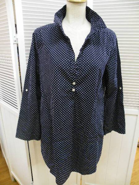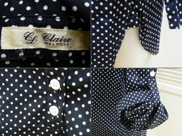ドット柄 ネイビー★メリローズ 長袖コットンシャツAライン