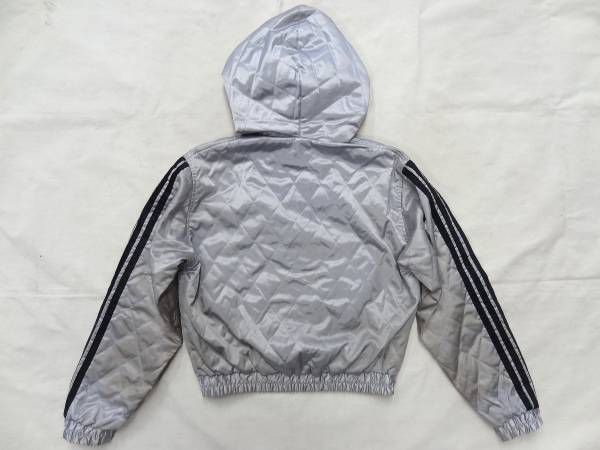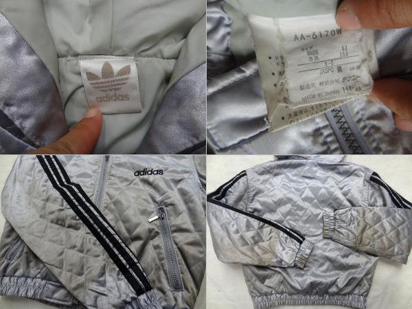 ビンテージ ADIDAS アディダス 80S デサント 銀 シルバー キルティング ジャージ ジップ パーカー ジャケット ブルゾン レア 黒 ライン 珍