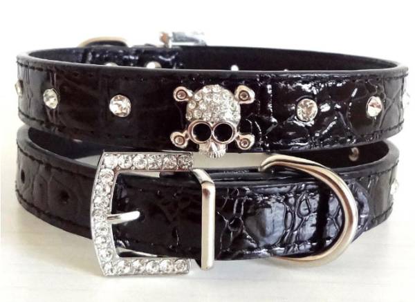 ★ 首輪 ドクロ 約21~27cm 小型犬 猫 ペット用 黒 送料無料