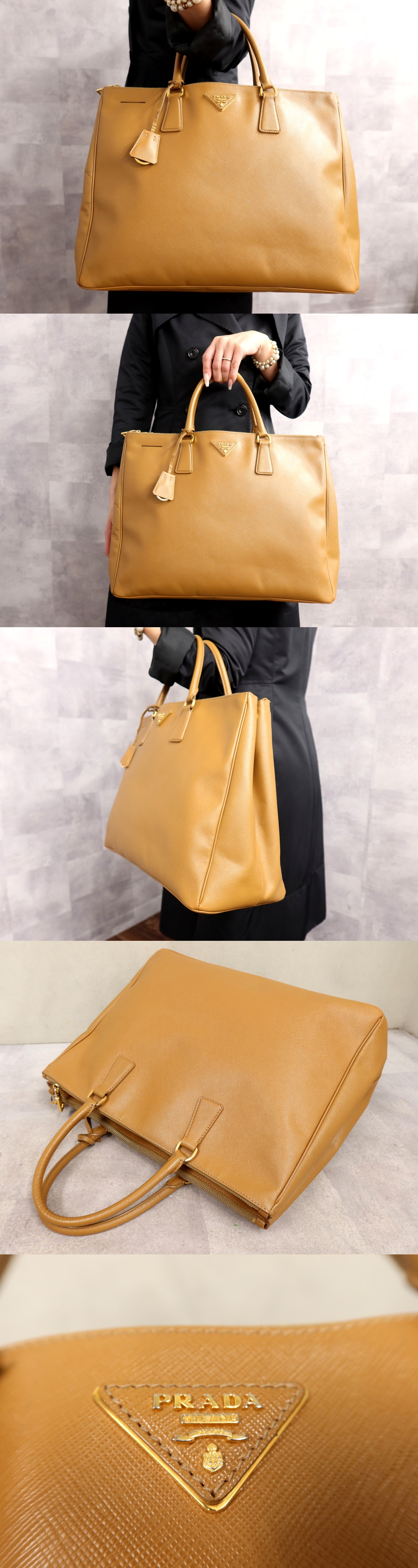 ●超美品●PRADA プラダ●ガレリア●三角ロゴプレート●サフィアーノ レザー 本革●トート バッグ●キャメル●G金具●腕掛け●A4●Js65700