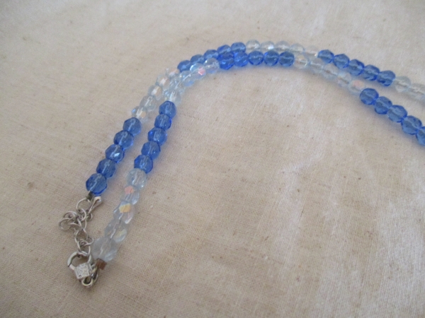 商品紹介 | 紺と水色ベースに緑、ベージュ、赤のドット柄が入った大きめのガラスモチーフが可愛いです。チェーンも大きめのビーズが使われていて統一感があります。 |