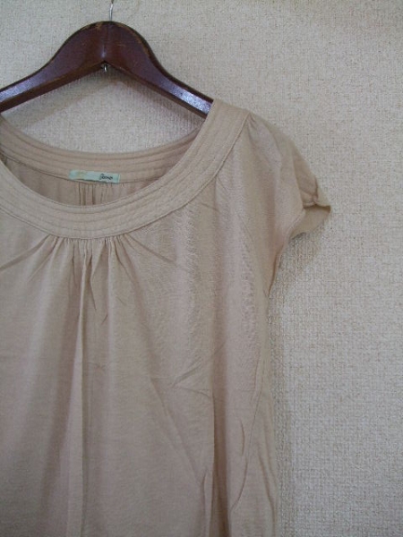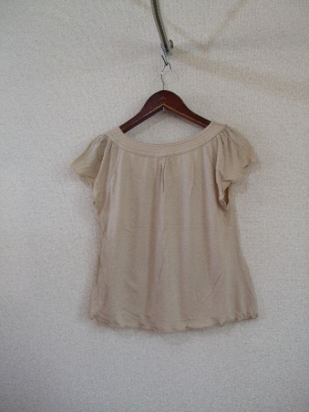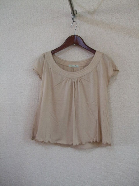 | 商品紹介 | ベージュの半袖カットソーです。 ふんわりとした形がカワイイです。 《素材》 綿50% レーヨン50% |