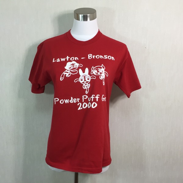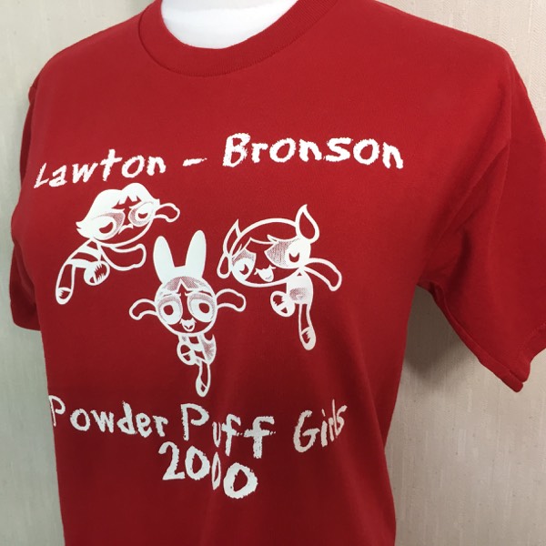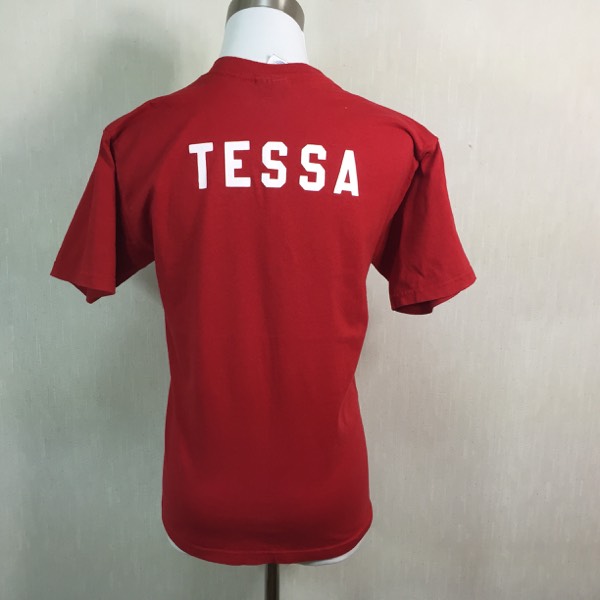 A526▼JERZEES◆赤/イラストPRINT 半袖Tシャツ綿/ポリ◆L14-16