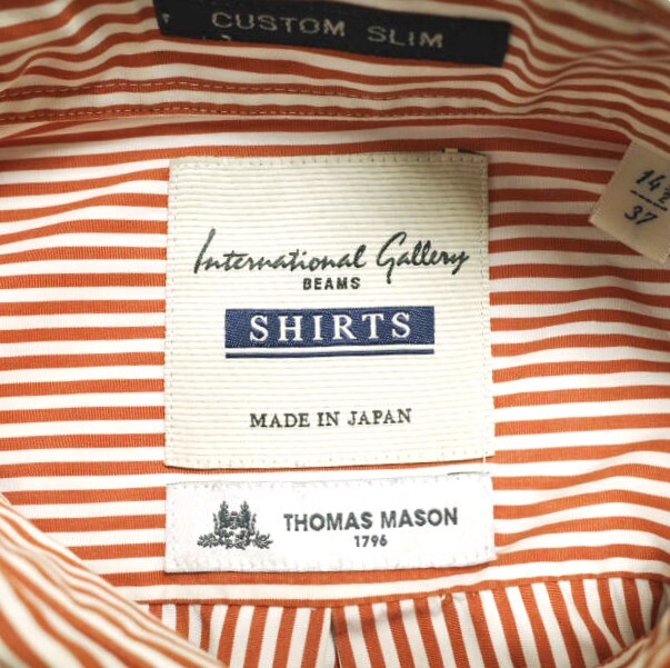 International Gallery BEAMS x THOMAS MASON IG ビームス 別注 カスタムスリム ラウンドカラーストライプドレスシャツ 37(141/2) Orange