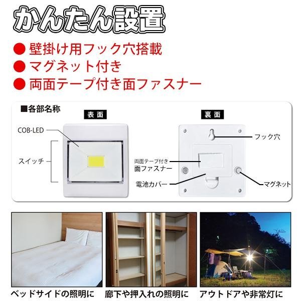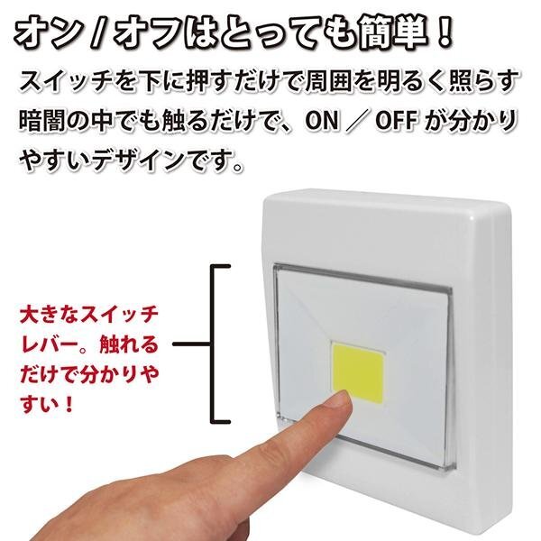 スイッチライト 押すだけ LED 高輝度ハイパワー 明るい 広範囲 マグネット付き 照明 ライト 壁掛け 送料無料 100K◇ スイッチ自体ライト