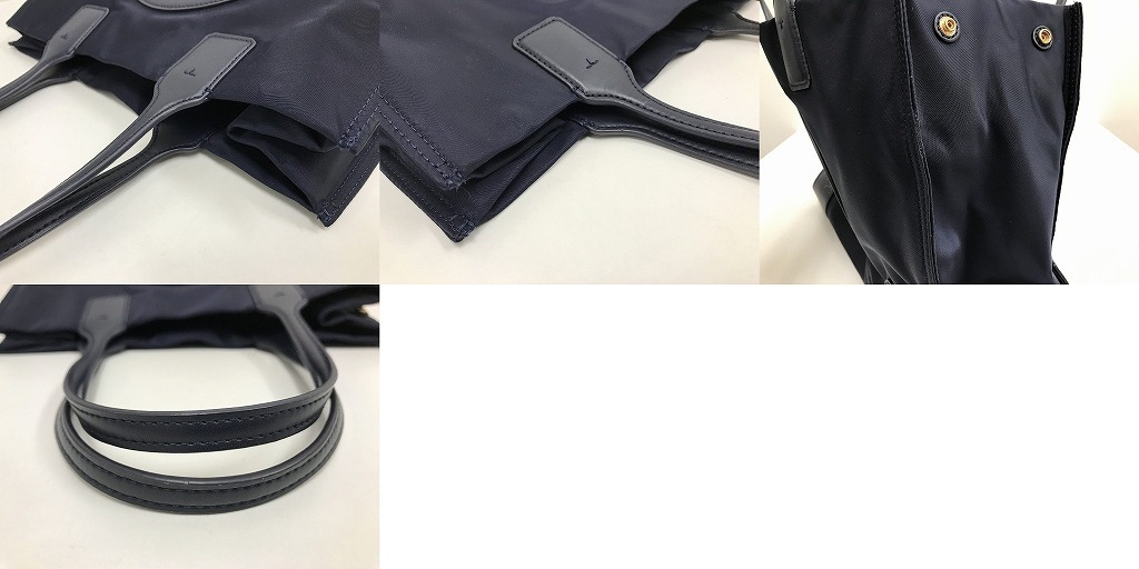 備考A4サイズ収納可  ハンドル高さ約19.0cm  肩掛け可   仕様/ 開閉:マグネットボタン   内側:ファスナーポケット1 ポケット1   外側:ポケットなし   カラー:紺ネイビー