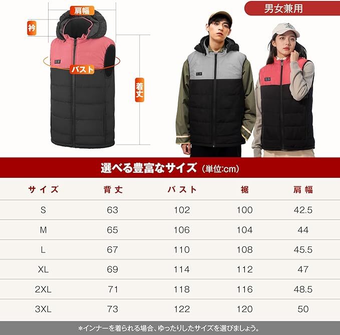 電熱ベスト ヒーターベスト レッド XLサイズ 17箇所発熱 40000mAhー 取り外せる帽子 裏起毛 防寒 保温 水洗い可 男女兼用 節電
