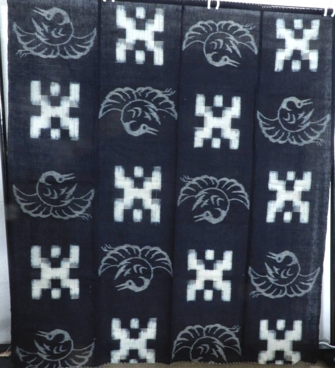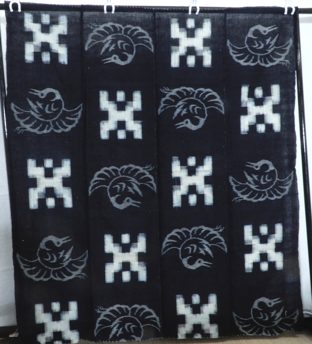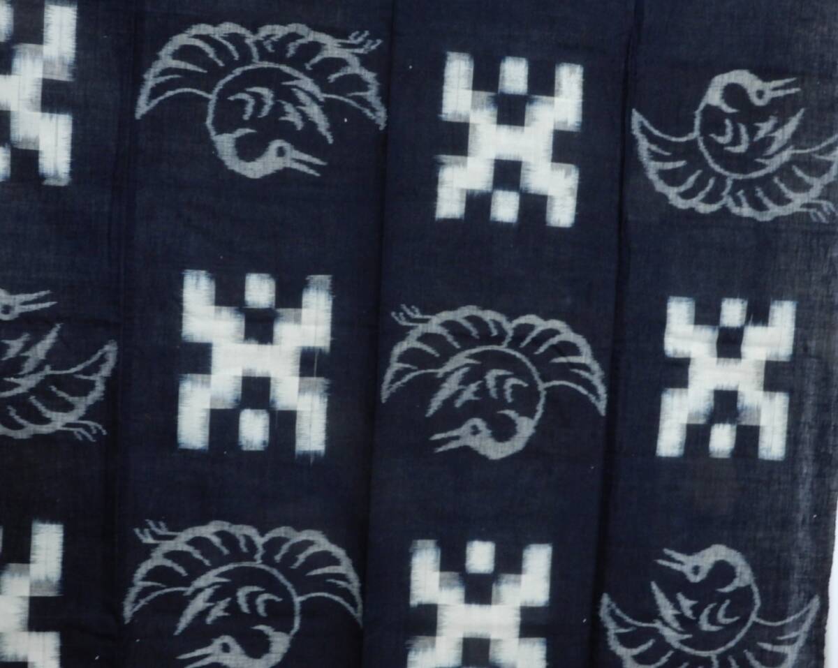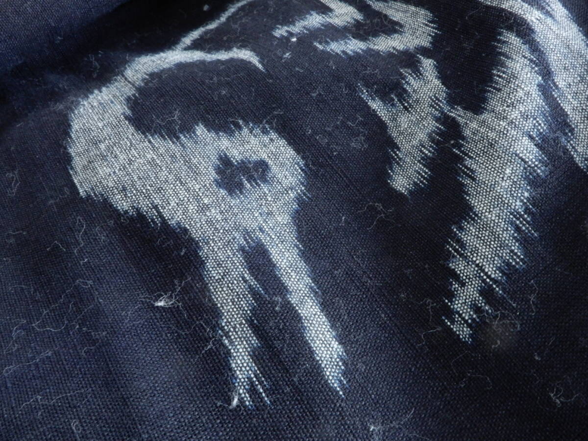 <銀の斧>木綿・明治期・古い久留米絣・手織藍染・鶴と絣の力・4巾
