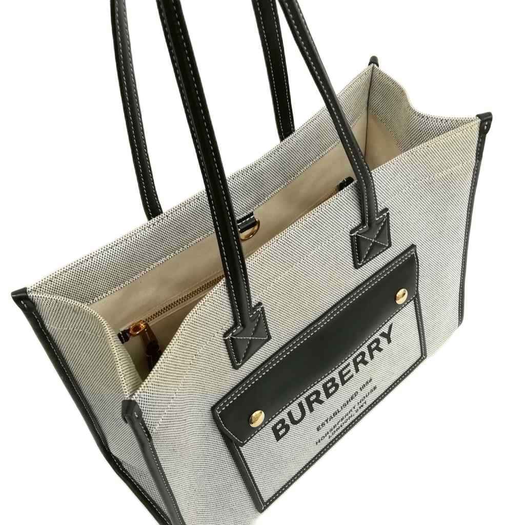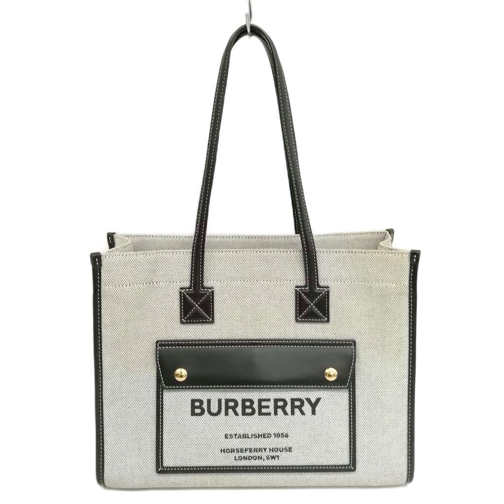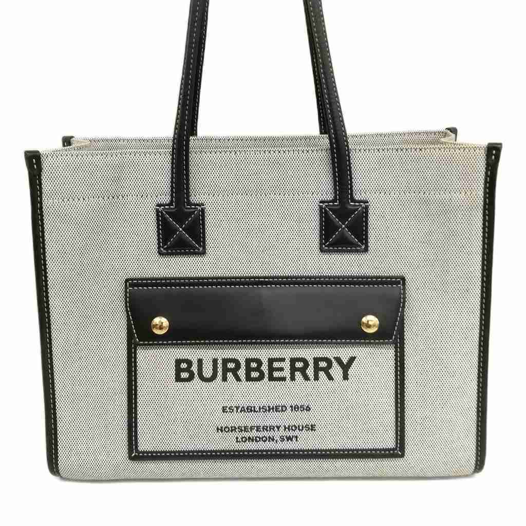 バーバリー BURBERRY スモール フレヤトート トートバッグ キャンバス レザー ブラック系 レディース