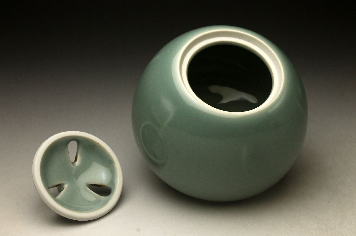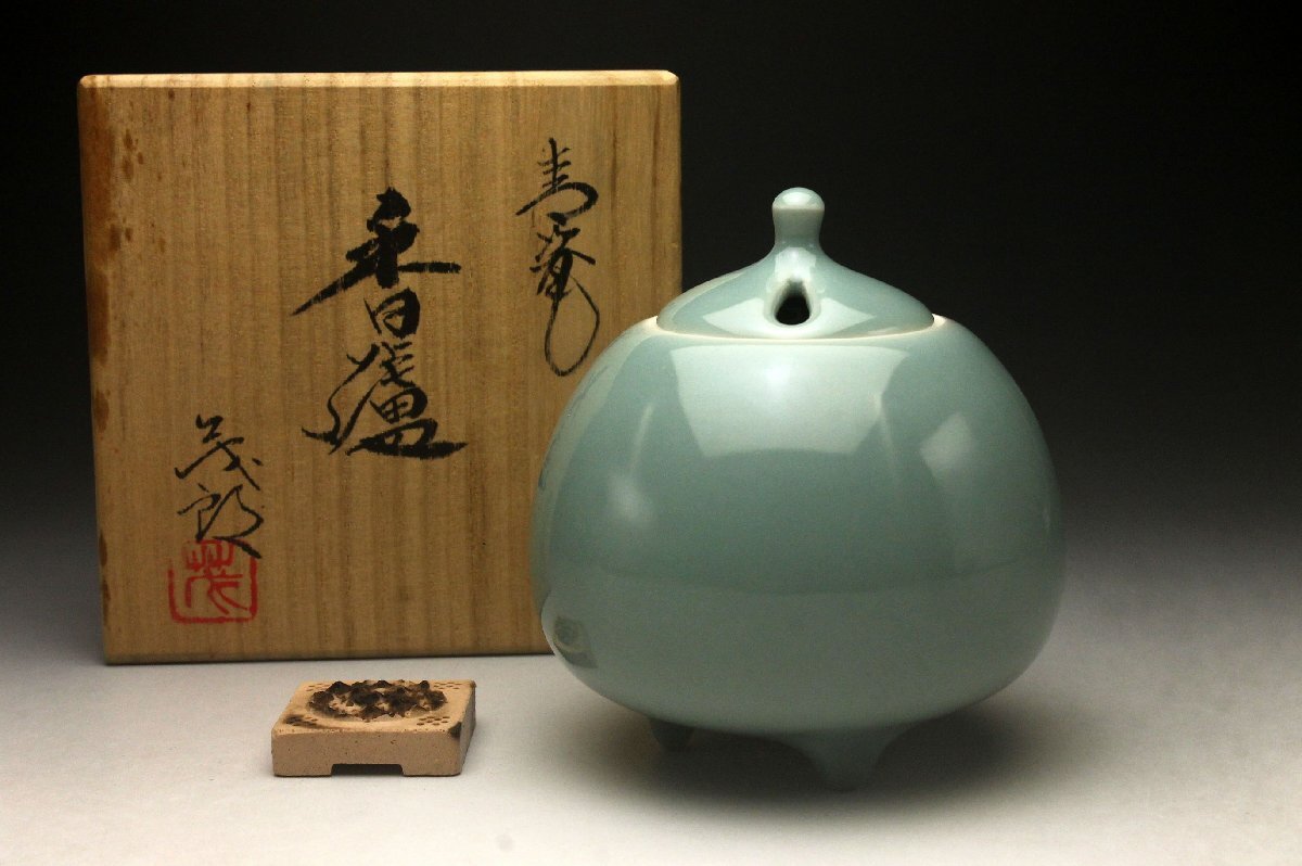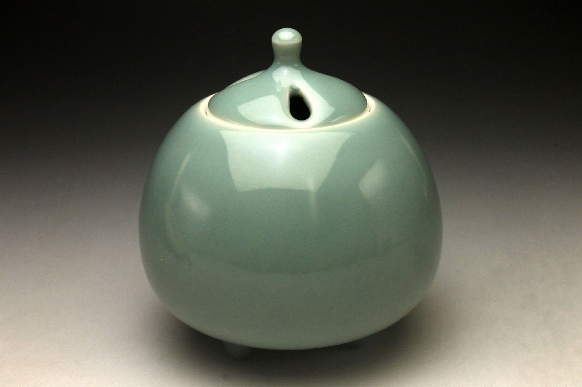 【余韻】 松斎窯 安田茂郎 青磁 茄子 香炉★共布 栞 共箱 無傷美品<同梱可>