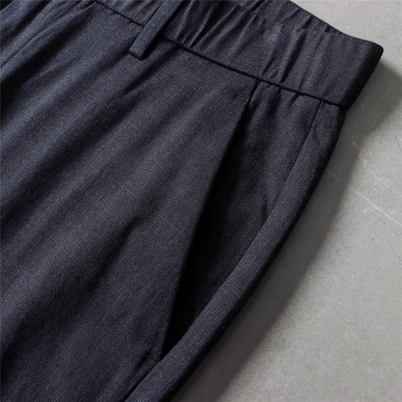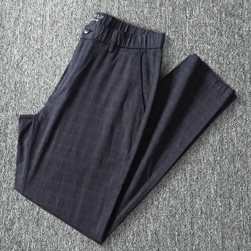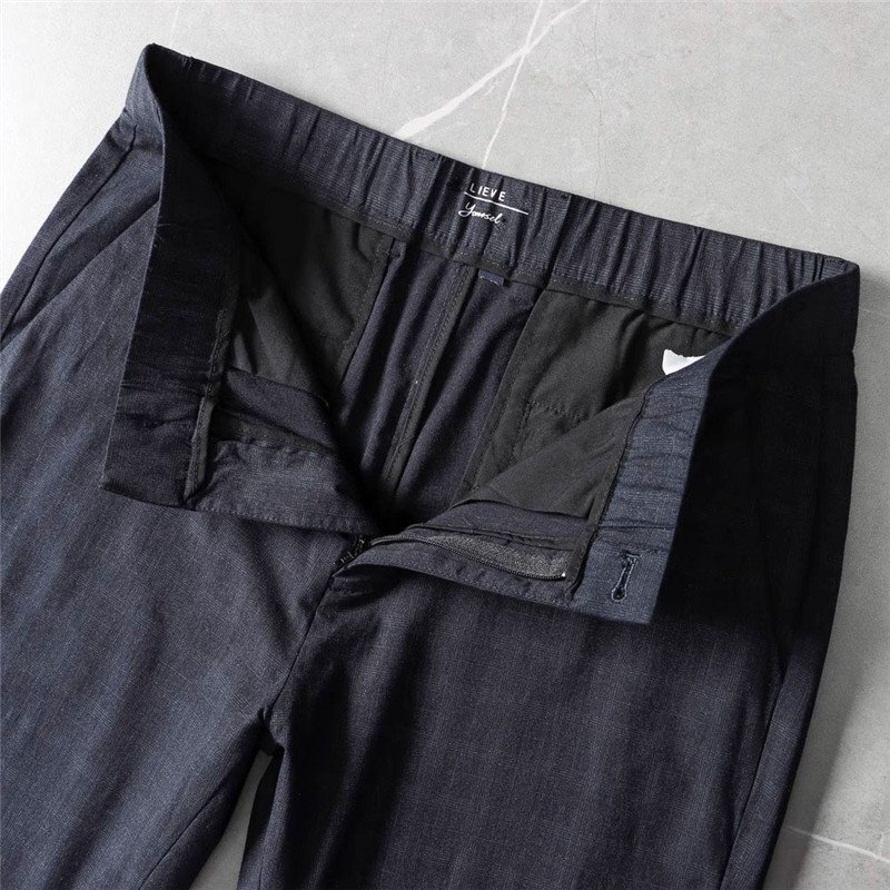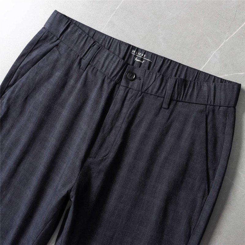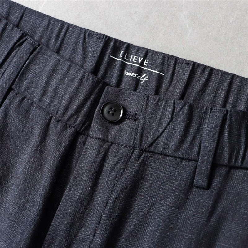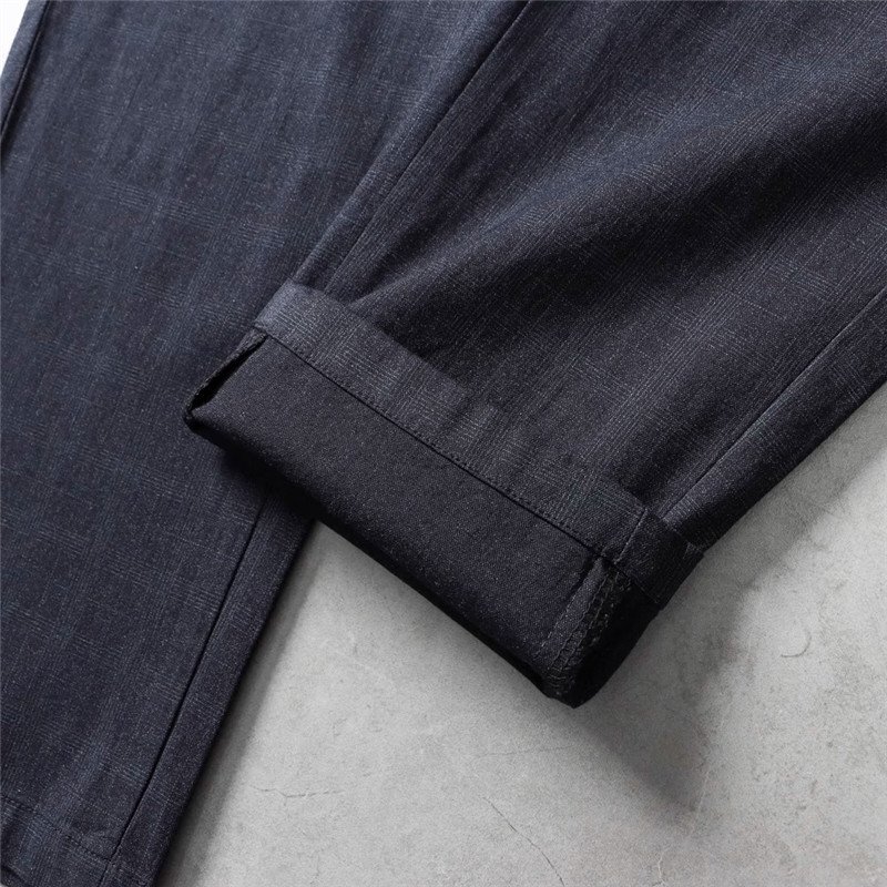 新品 DCKMANY メンズ スラックス テンセルモダール混 薄手 春夏 チェック柄 通気性 ストレートパンツ ロングパンツ/紺色T3054-4XL