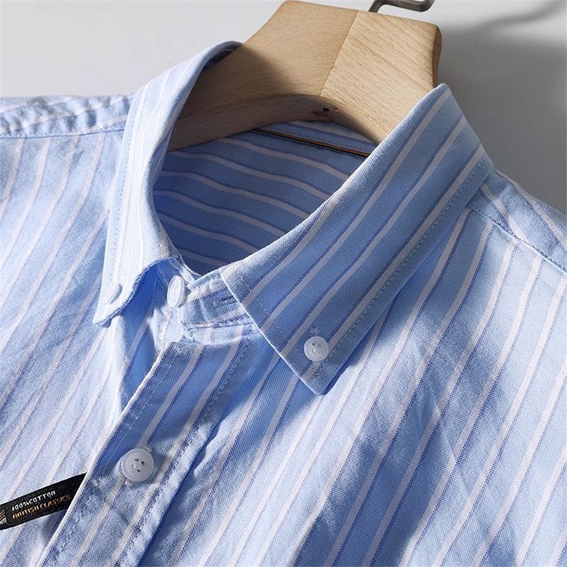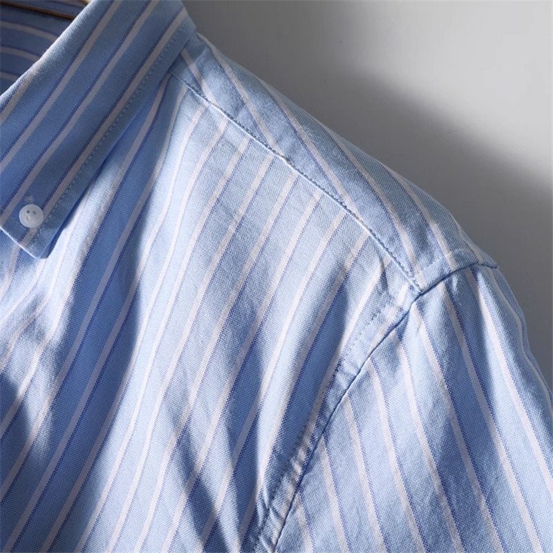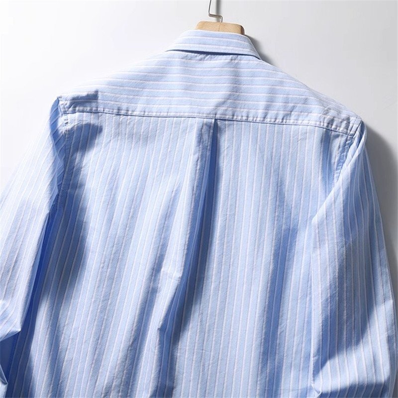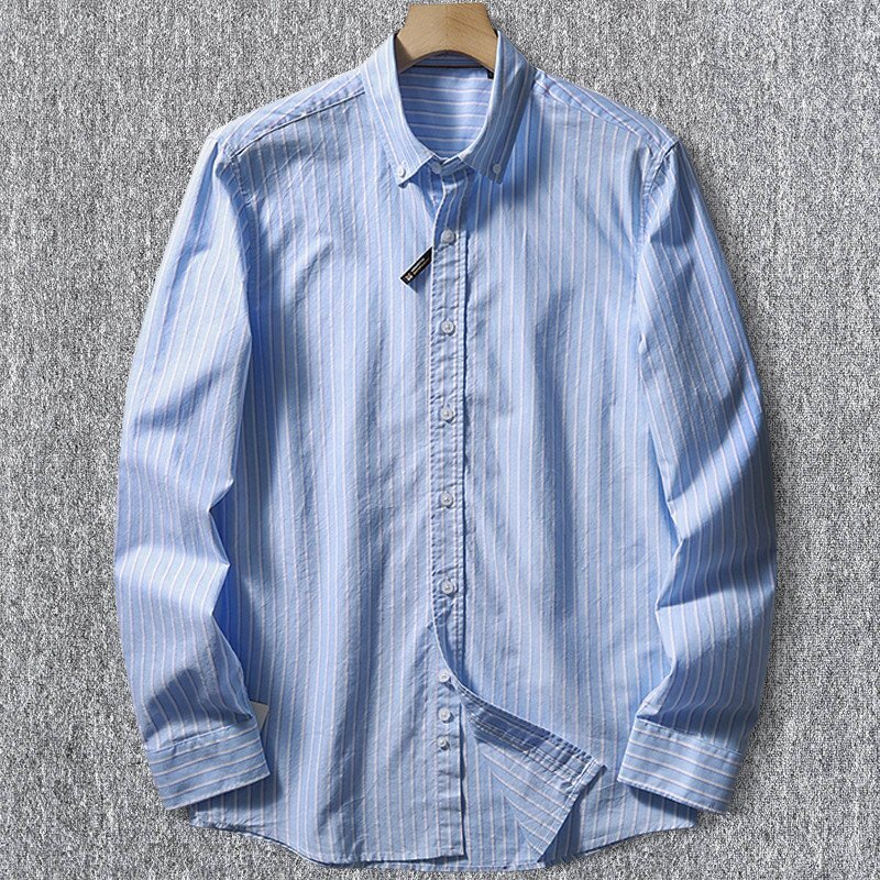 極上品質!国内未販売 DCKMANY 新品メンズストライプ長袖シャツ 純綿 春夏 オフィス ビジネスカジュアル/水色T5046-4XL