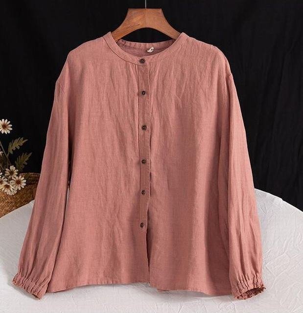 涼しい 綿麻 シャツ レディース ブラウス 春 秋 リネン 長袖 シャツブラウス 麻混 トップス 着心地 ピンク M
