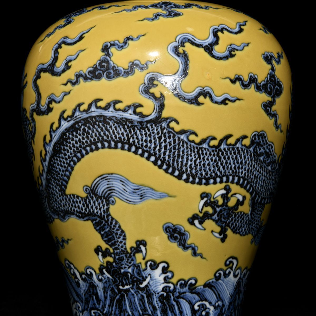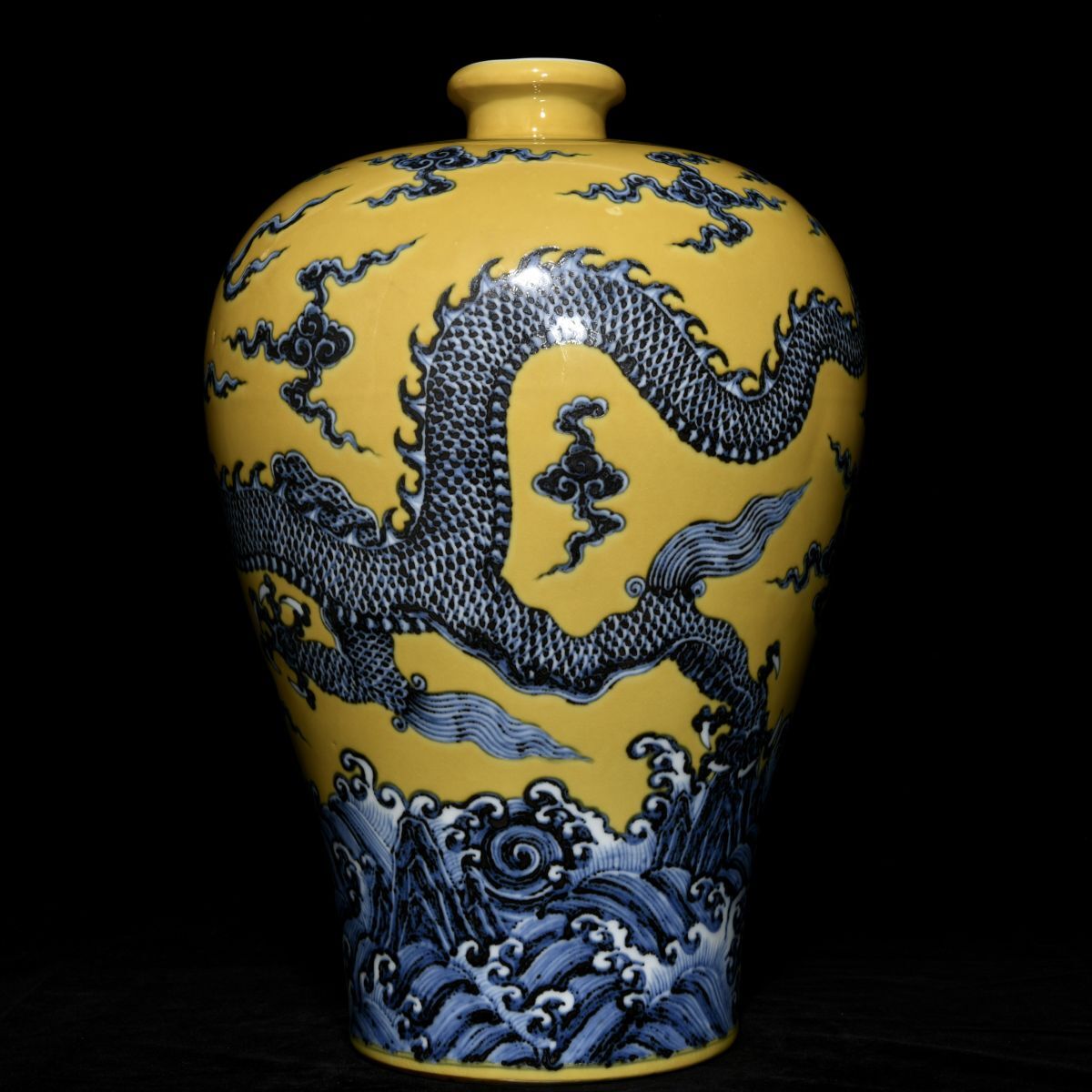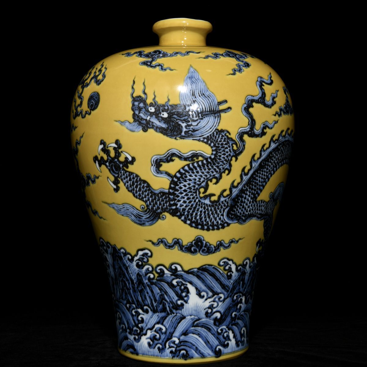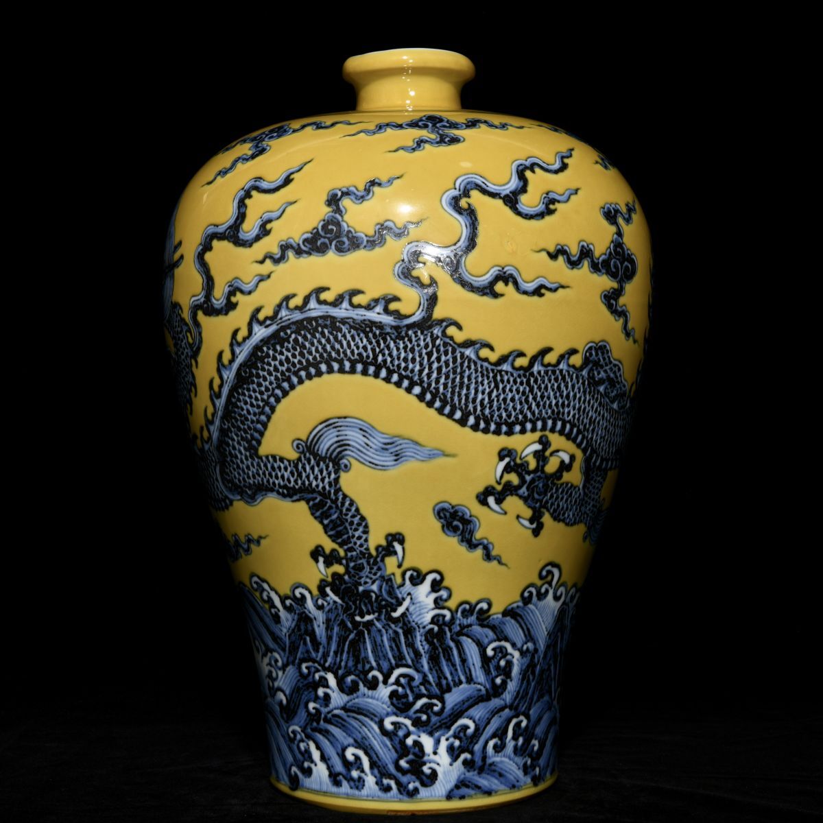 【永】明時代 宣德年製 黄釉青花 海水龍紋瓶 古陶磁器 陶芸 皿 中国陶瓷器 唐瓷 置物擺件 古美術品 古賞物 収集 旧家蔵出 中国唐物 A3
