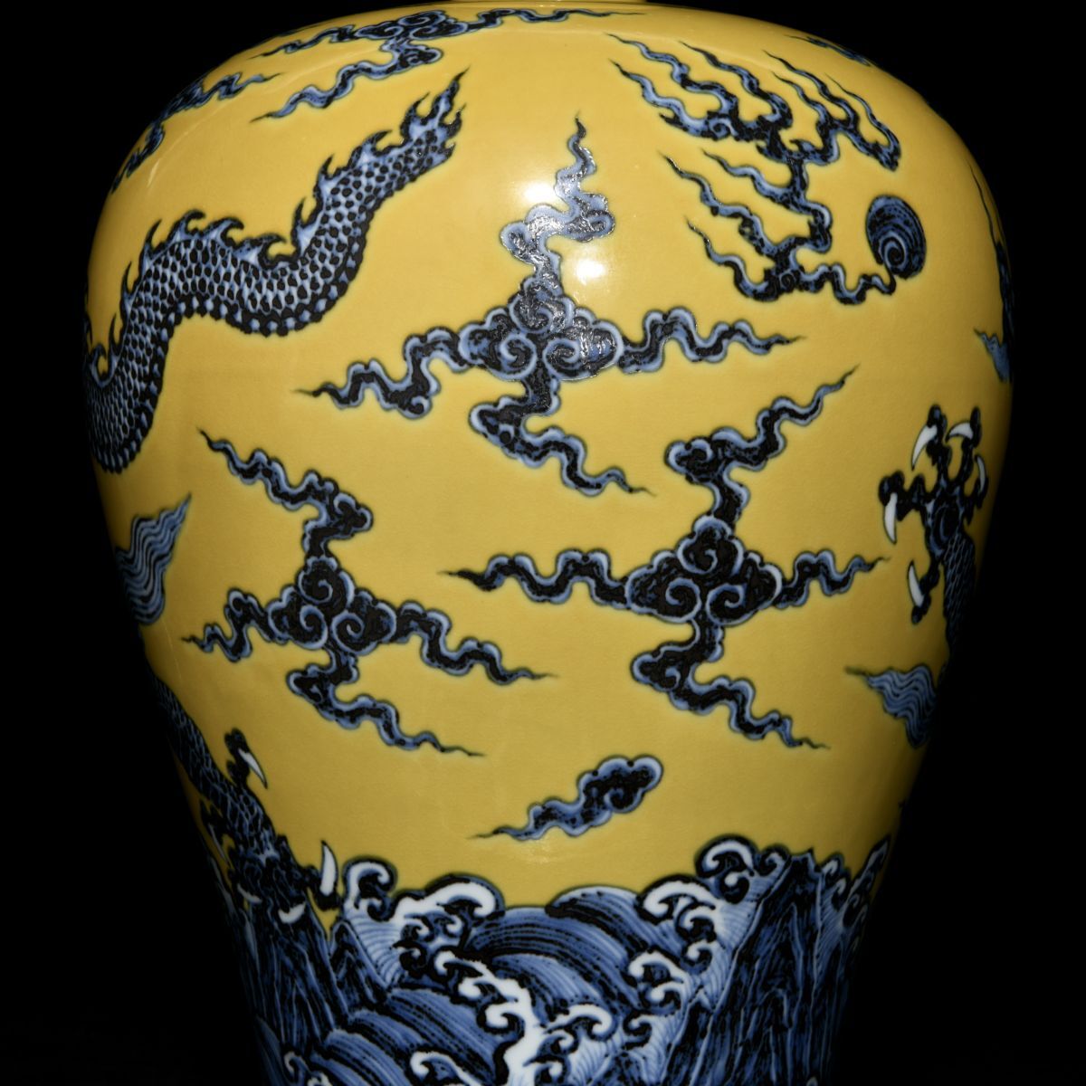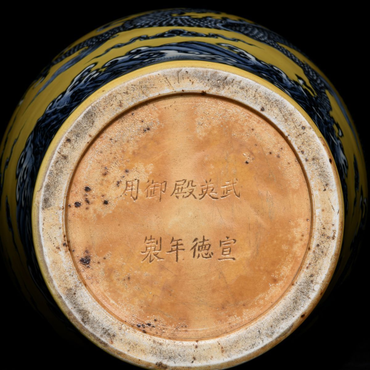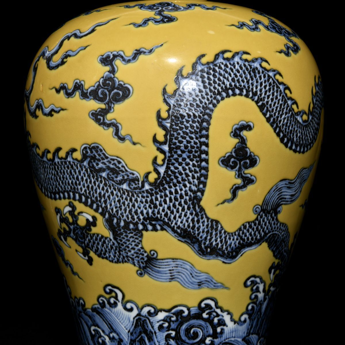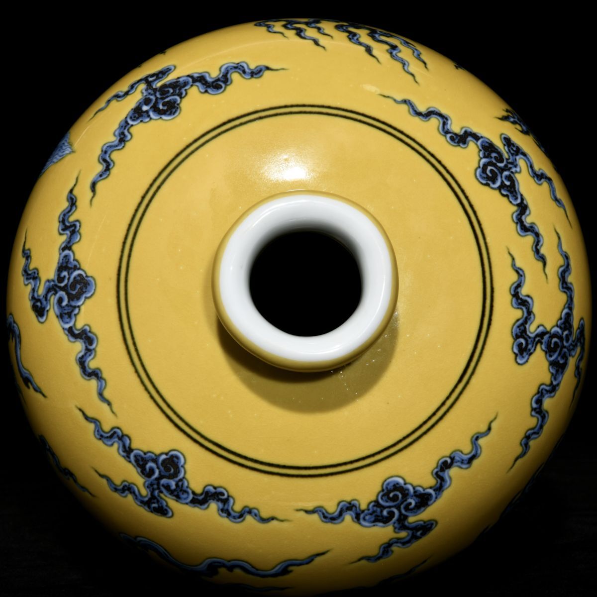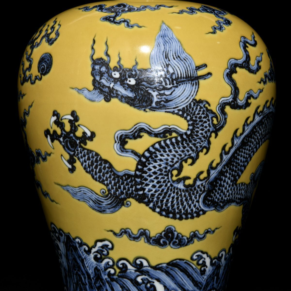 【永】明時代 宣德年製 黄釉青花 海水龍紋瓶 古陶磁器 陶芸 皿 中国陶瓷器 唐瓷 置物擺件 古美術品 古賞物 収集 旧家蔵出 中国唐物 A3