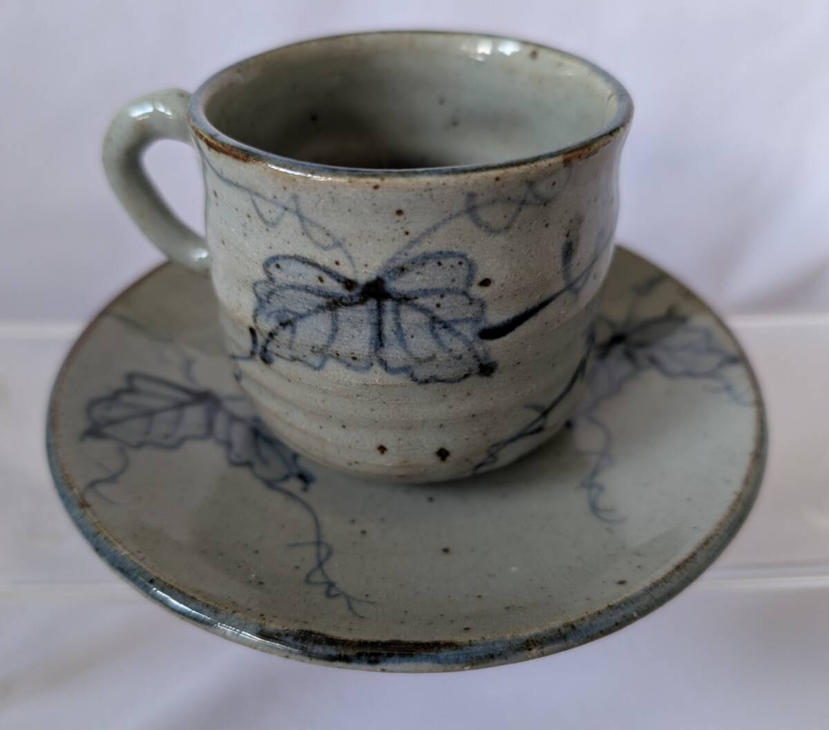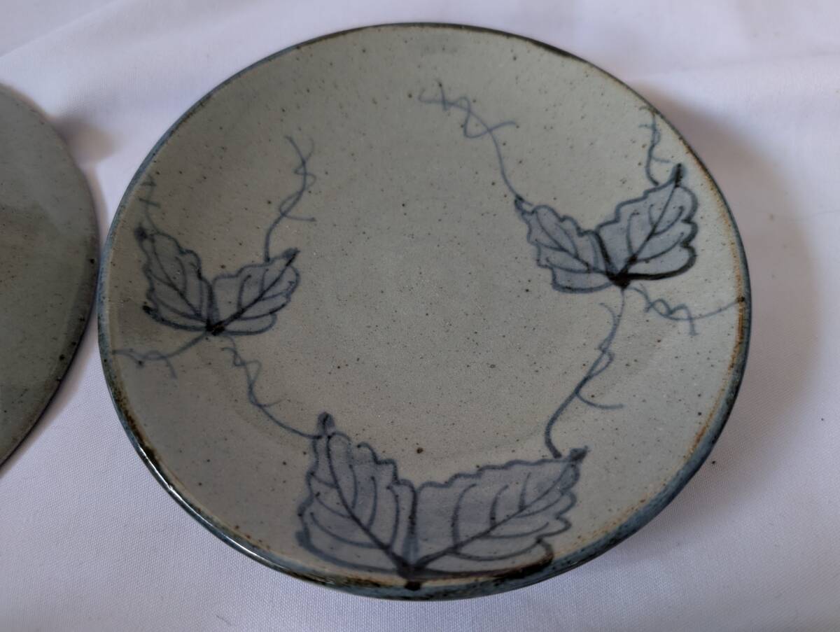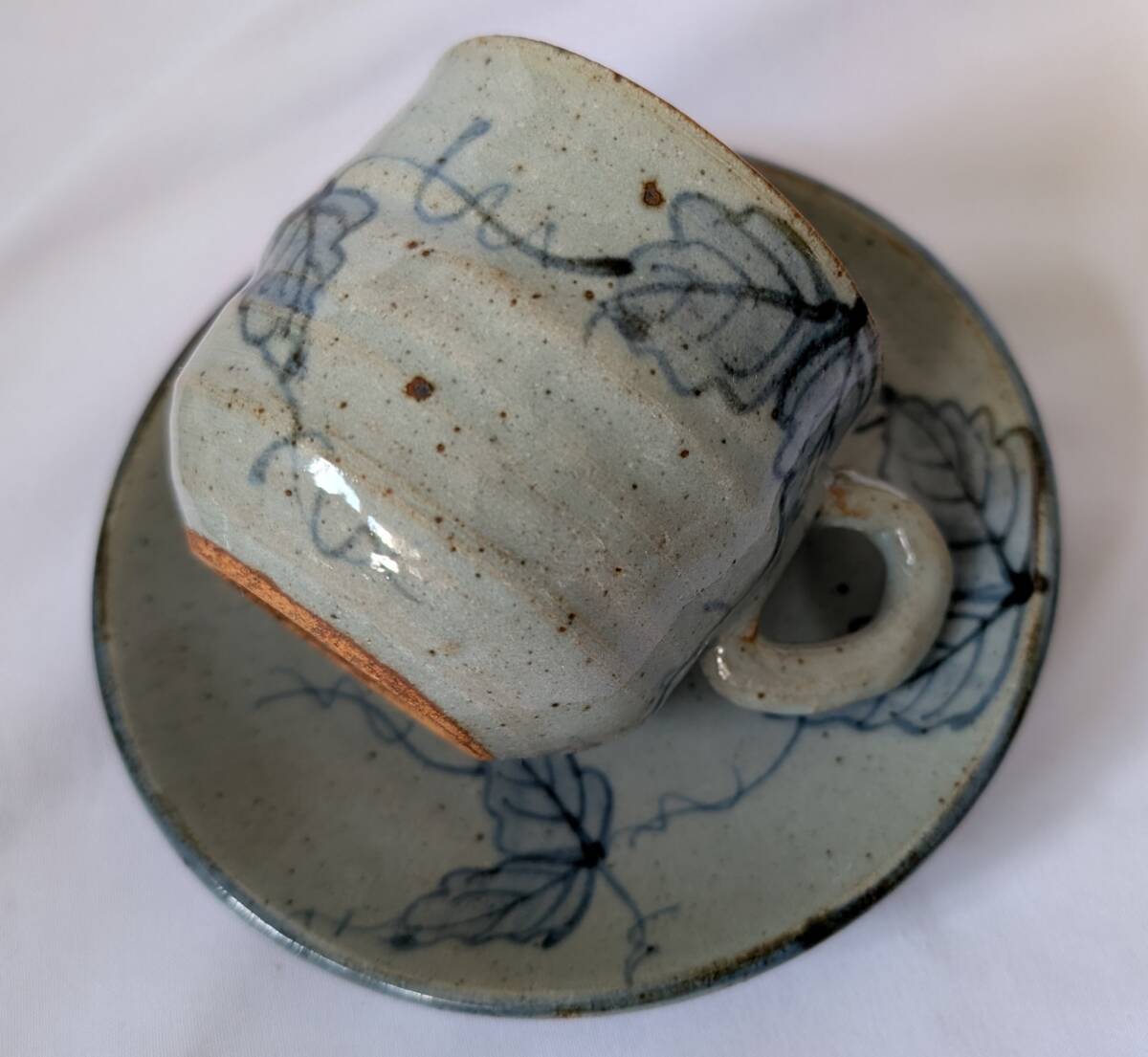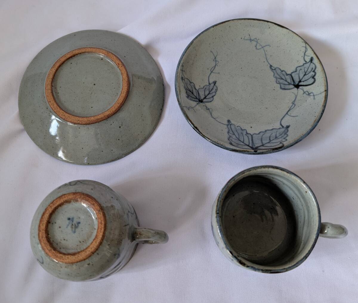 即決可 蔦柄 カップ&ソーサー 2客 ペアカップ 作家名有「玄」  *ツタ柄
