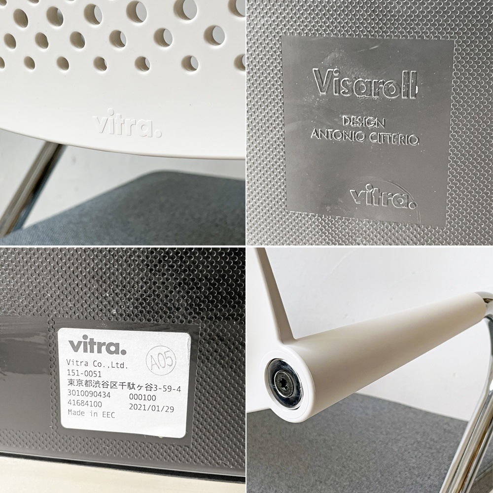 | コメント | スイス " ヴィトラ / Vitra "社より『 ビザロール Visaroll デスクチェア 』です。 ” ヴィトラ / Vitra “は、1950年創業のスイスを代表する老舗家具メーカー。C&Rイームズのシェルチェアを始め、世界的なデザイナー達と共に創造性と先見性、また品質に於いて国際的な評価を受け、多くのインテリアファンより愛用されています。 同作を手がけた” アントニオ・チッテリオ / Antonio Citterio “は、同社を始め、KartellやB&B italia、FLOS等、数多くのインテリアメーカーにデザインを提供、イタリアモダンデザイン界を牽引するデザイナーのひとりです。 1987年と1995年に栄誉あるコンパッソドーロ賞を受賞し、ニューヨーク近代美術館(MoMA)の永久コレクションにも選定されています。 パンチング加工が施された目を惹く背もたれは柔軟性のあるプラスチック製。 通気性に優れ、熱が籠りにくい為、長時間のデスクワークでも快適にお使い頂けます。また、脚部はキャスターとなっているので移動も楽に行え、デスクワークをサポートします。 同モデルであれば3脚までスタッキングが可能。ご自宅使用は勿論、オフィスの会議用椅子としても重宝致します。 ※当ショップは、主にリサイクル品を取り扱っております。基本的にUSED品である事をご理解頂き、ご入札をご検討下さいませ。 |