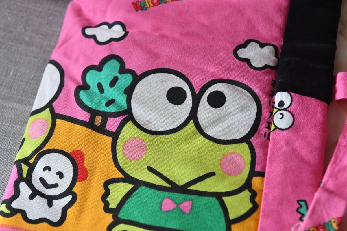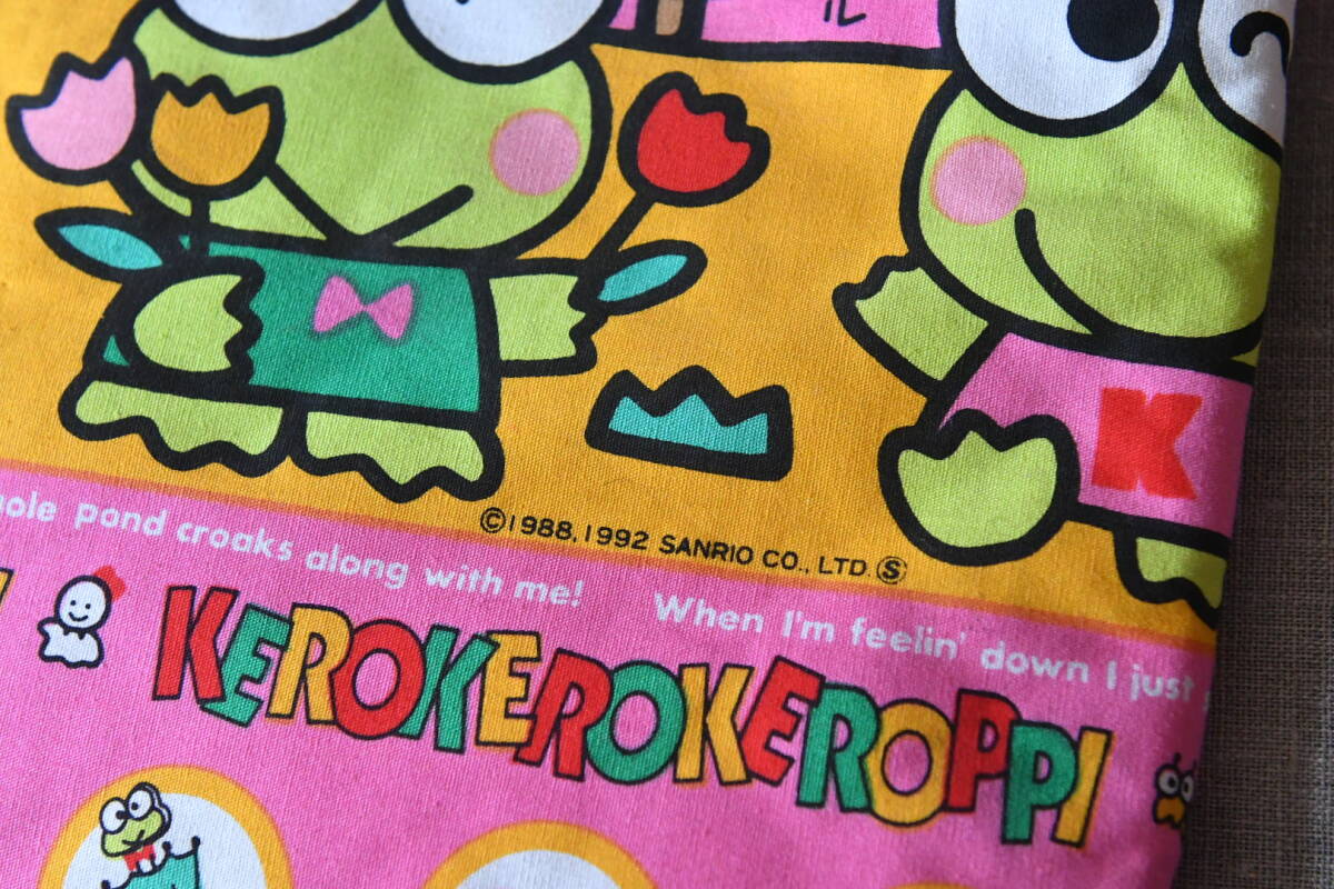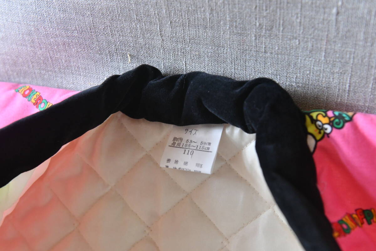 お子様110サイズ けろけろけろっぴキッズ用綿入れ半纏 茶シミ有サンリオレトロ1992 はんてん羽織和風部屋着秋冬服 リメイクにどうぞ