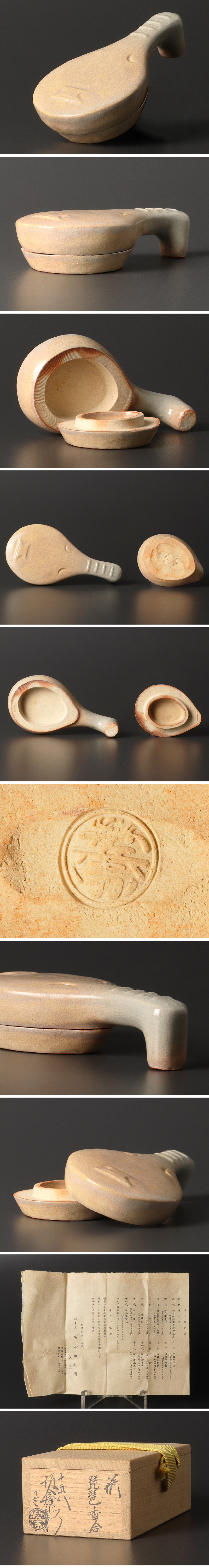 | 【古美味】十五代坂倉新兵衛造 萩 琵琶香合 茶道具 保証品 |