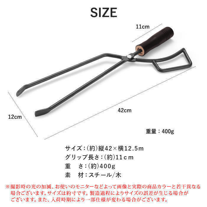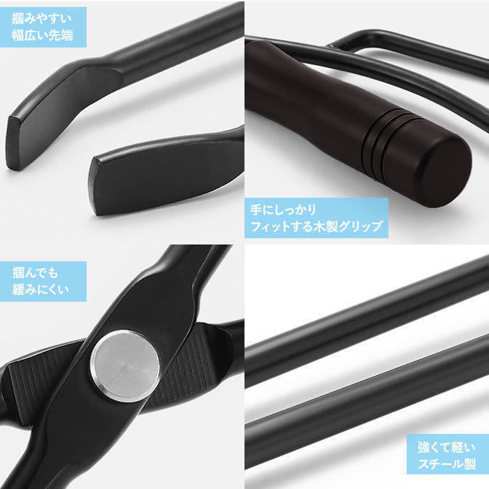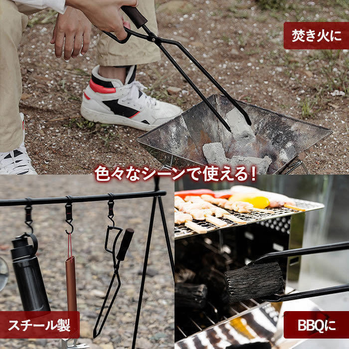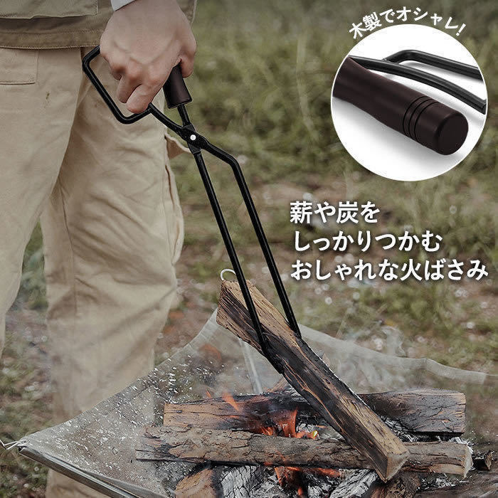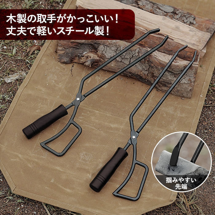 薪ばさみ 火ばさみ ダークブラック 黒茶 焚き火トング 炭トング 薪バサミ 火バサミ 炭バサミ 木製ハンドル ファイヤープレーストング バーベキュー 薪トング スチール製 ブッシュクラフト |