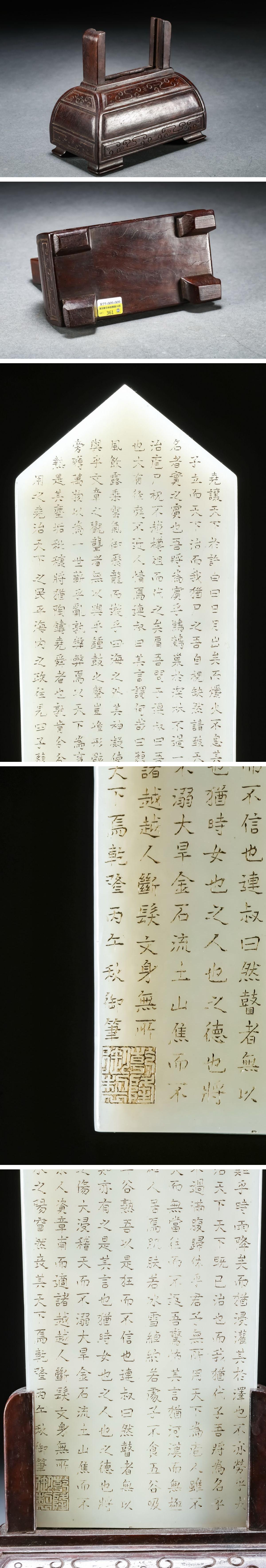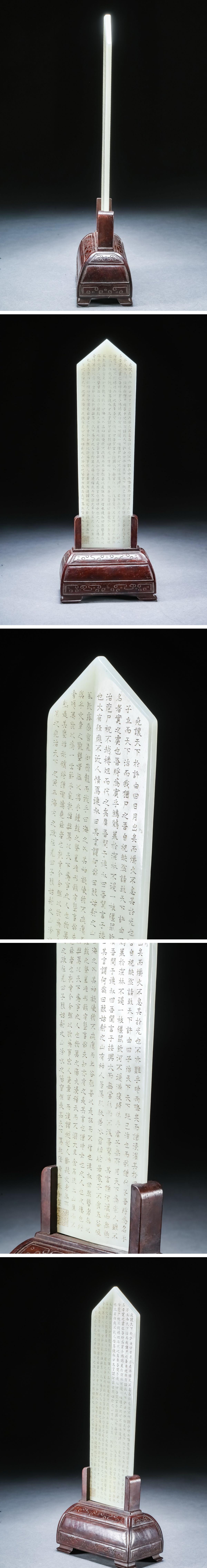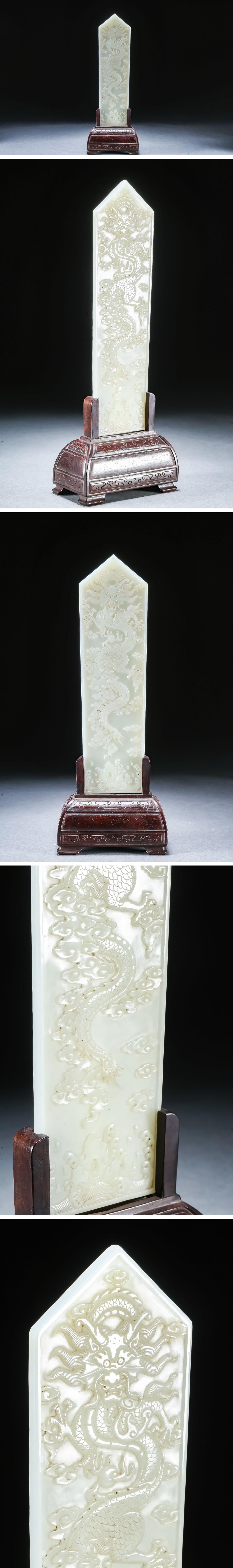 【清】某有名オークション購入 清時代 和田玉 白玉漢詩紋玉圭 当時物保証 材質保証 古置物 中国伝来 古美術 時代コレクション7L8-IIY