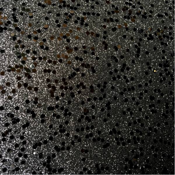 細かいグリッターの上から荒いグリッターを接着してあるあまり見かけない生地です。
