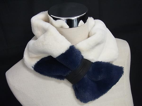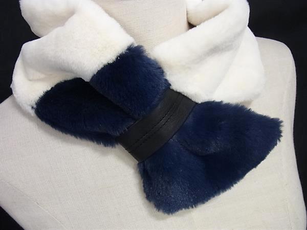 ■新品■未使用■ FURART ファーアート ポリエステル100% ティペット マフラー 防寒具 レディース アイボリー系×ネイビー系 DG0870