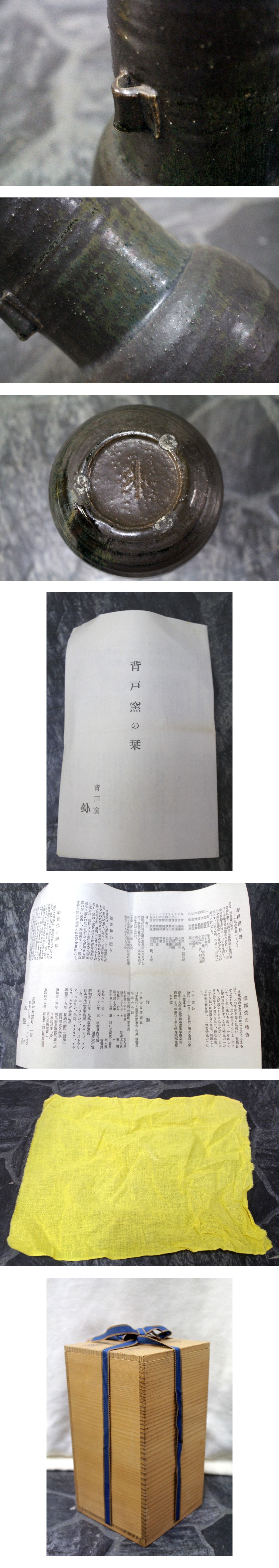 | 商品説明 | 【商品詳細】69希少レア当時物◆蔵出し◆未使用◆瀬戸/背戸 窯◆加藤 釥◆蒼釉 華入/花瓶/花器◆略歴/ウコン布/共箱 付◆サイズ約 直径12×高さ21㎝骨董の出品となります。 初めに、当方専門的知識がございませんのでご理解を宜しくお願い致します。 未使用品にはなりますが、簡易保管の為、多少の汚れ・キズ・スレ等ある可能性がございますのでご理解下さい。共箱が付属しておりますが、簡易保管の為、汚れ、スレ等の使用感あるかと思いますのでご理解下さい。当方素人の為、詳細がわかりかねますので、掲載画像をしっかりとご確認の上、ご理解いただける方のみご入札をお願い致します。当方専門的知識がございませんので、商品の状態や完品との比較等は分かり兼ねます。未使用の状態ではございますが、直接手で触れられる状態ではございますので、状態ランクはBランクとさせていただきます。掲載画像をご確認の上、価値のわかる方、ご理解いただける方のみ、画像での判断でご検討下さい。 画像にあるものが全てになります。 商品は全てくまなくチェックしていない為、当方では発見できない破損ヶ所、欠損ヶ所がある場合がございます。画像で判断して頂き、少しでもご不安が残る方はご入札をお控え下さい。出来る限りご質問にはお答えさせて頂きます。極端に神経質な方、新品をお求めの方は入札をご遠慮下さい。以上の事をご理解頂ける方のみお願い致します。ノークレームノーリターンで宜しくお願い致します。 ※素人撮影の為、写真と実物のカラーが多少事なる場合がざいますのでご了承下さい。 【サイズ】(約) 直径 12㎝ 高さ 21㎝ 口径 外径 8.5㎝ 内径 7㎝ ※あくまで素人寸法となりますので多少の誤差はご了承下さい。 ●状態ランク・・B 【状態ランク説明】 A・・・新品(未開封、未使用品) B・・・未使用品(開封済みですが未使用) C・・・中古(使用感少な目の美品) D・・・中古(多少使用感あり) E・・・中古(目立つ汚れ、キズ等有り) F・・・ジャンク品 以上の内容・画像を十分ご覧いただきご入札ご検討ください。 |